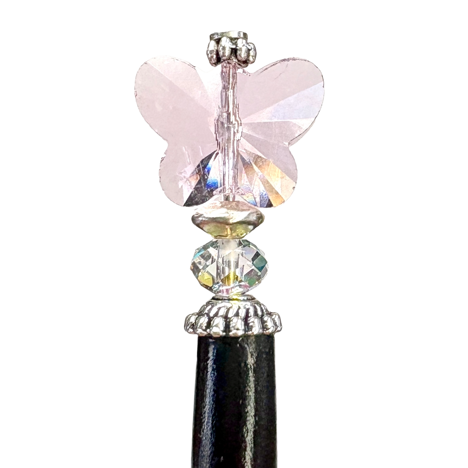 We are loving this crystal Butterfly in a beautiful pink shade with an iridescent Preciosa Crystal accent bead. Also available in a purple shade. Mix and match the colors for total Y2K vibes!