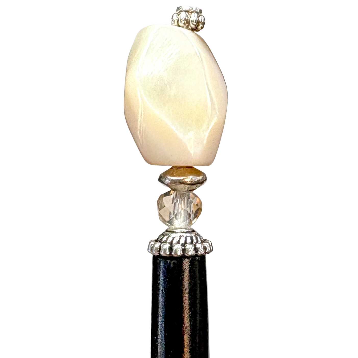 Bette is simply stunning… it is made with a mother of pearl nugget with an ivory colored glistening crystal rondelle.