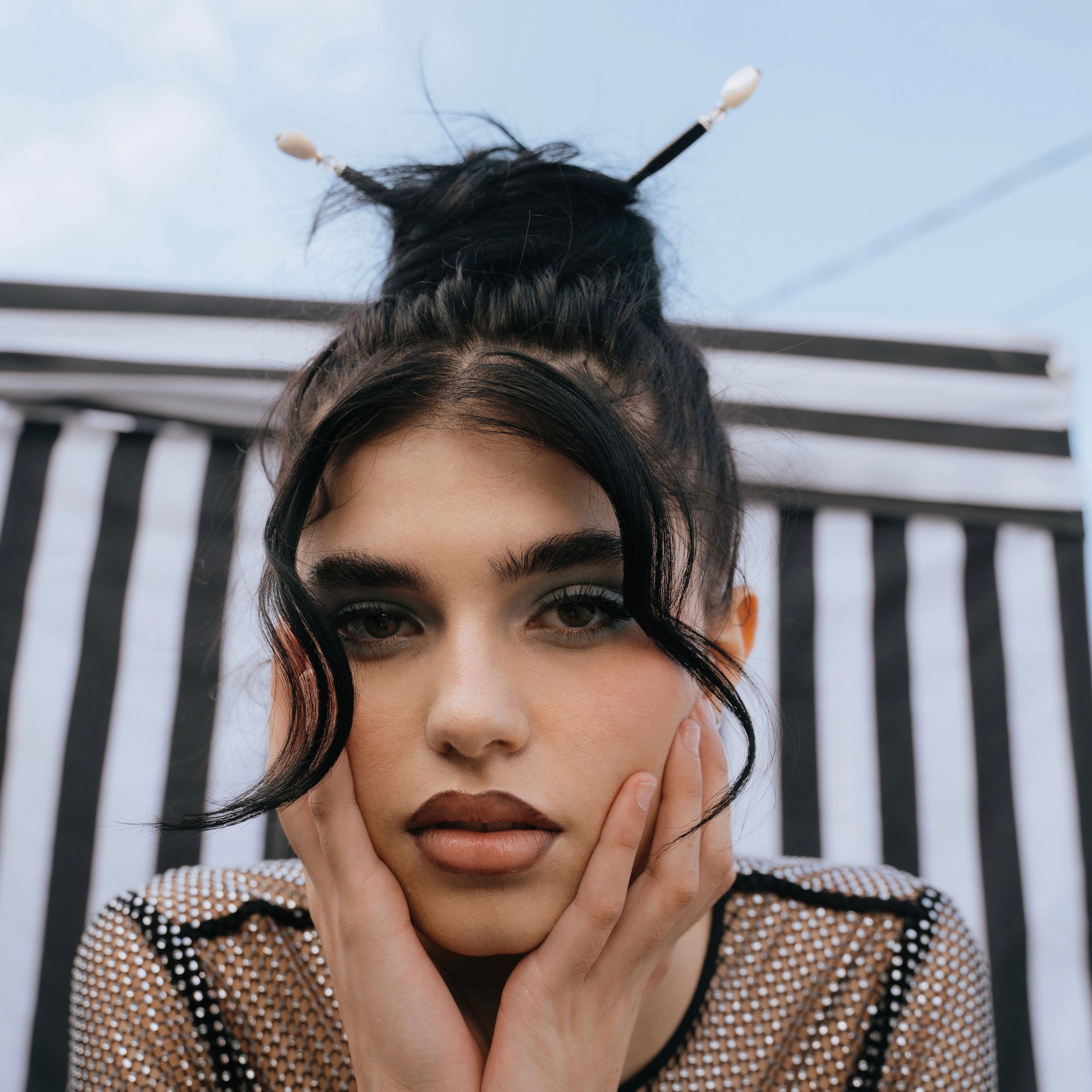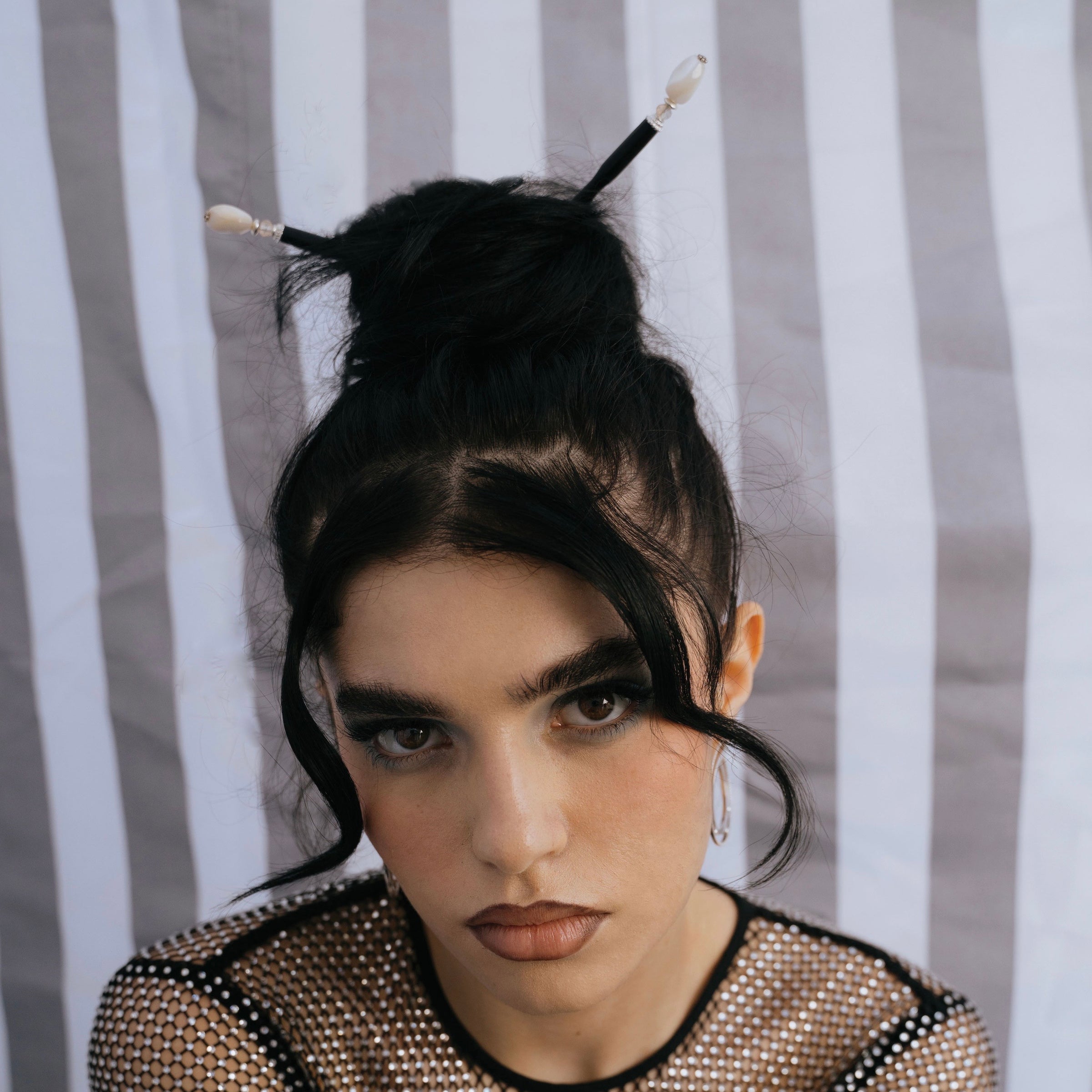 These hair sticks were featured in FLAUNT magazine and were worn by singer Yona.