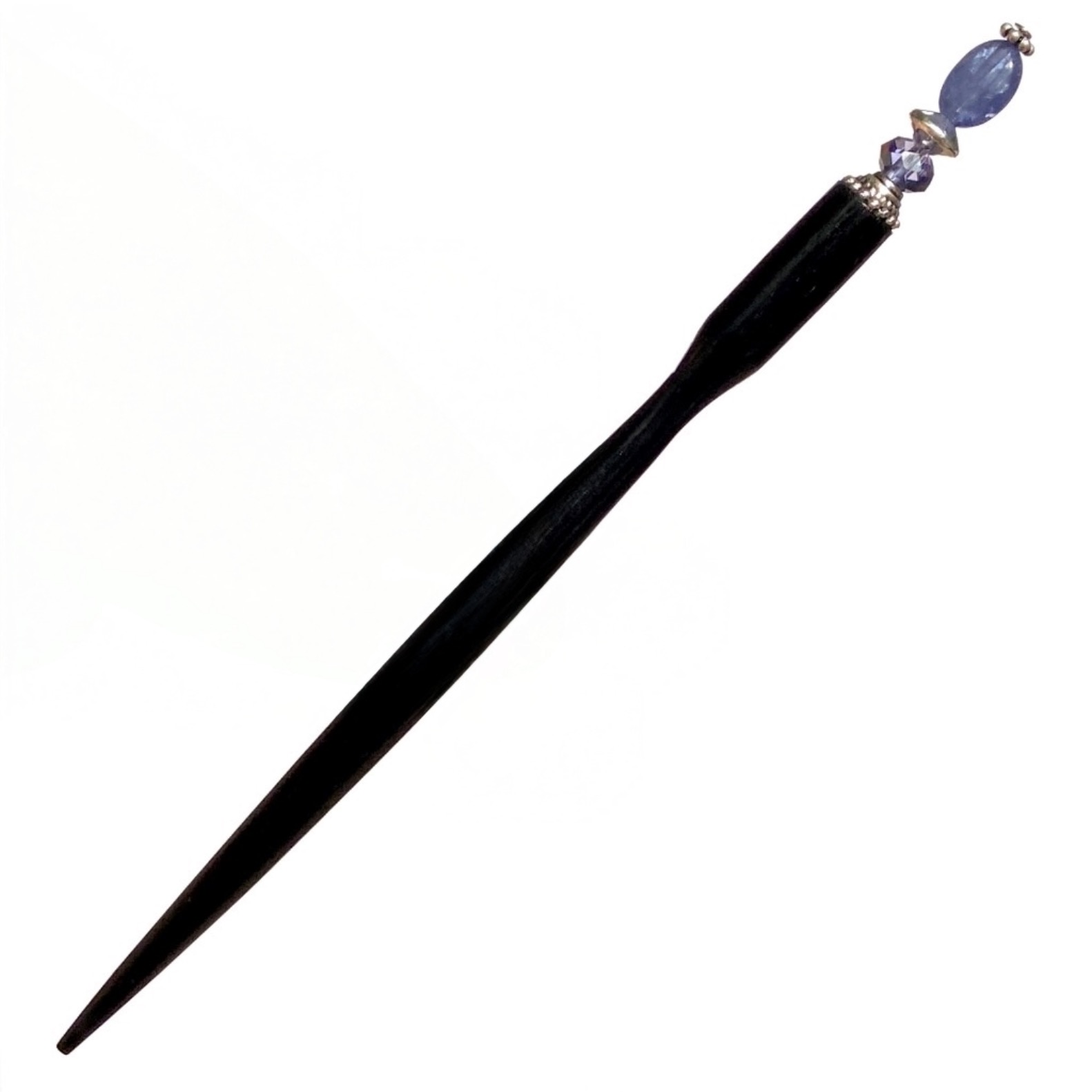 Premium Line Tidal Hair Stick: our Claudia Hair Stick is made with a small, stunning blue violet authentic Tanzanite nugget and a sparkling Austrian crystal to match. The spacer beads are all pure 925 Sterling Silver as well.